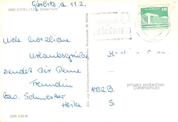 73081146 alte Postkarte Goerlitz Sachsen Dicker Turm postalisch gelaufen Erhaltung siehe scans [FriedD77] KatCode: 11110014263000