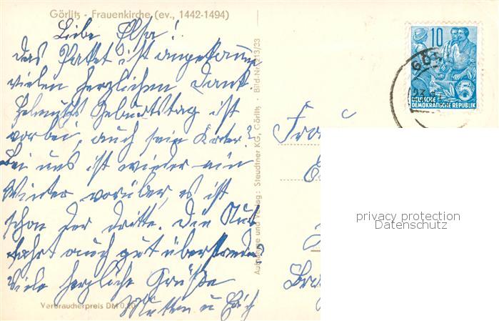 73832448 alte Postkarte Goerlitz Sachsen Frauenkirche postalisch gelaufen Erhaltung siehe scans [FriedD77] KatCode: 11110014263000