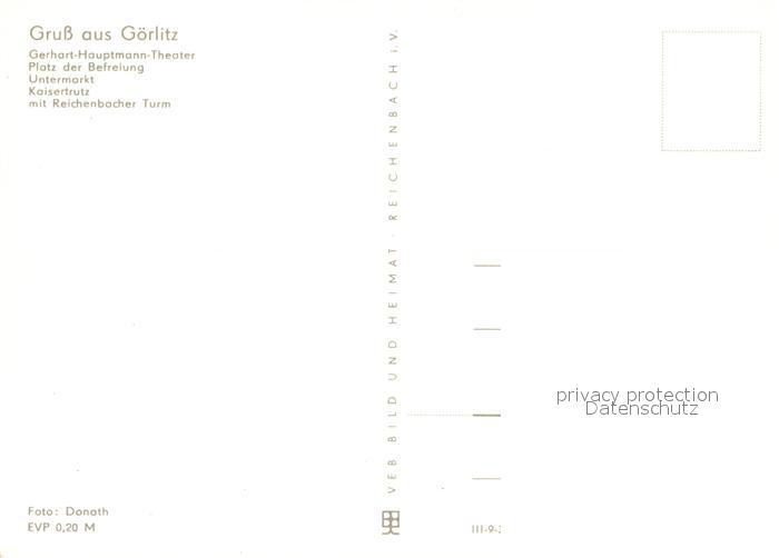72998340 Goerlitz Sachsen Gerhart Hauptmann Theater Platz der Befreiung Untermarkt Kaisertrutz mit Reichenbacher Turm postalisch nicht gelaufen Erhaltung siehe scans [WerneD78] KatCode: 11110014263000