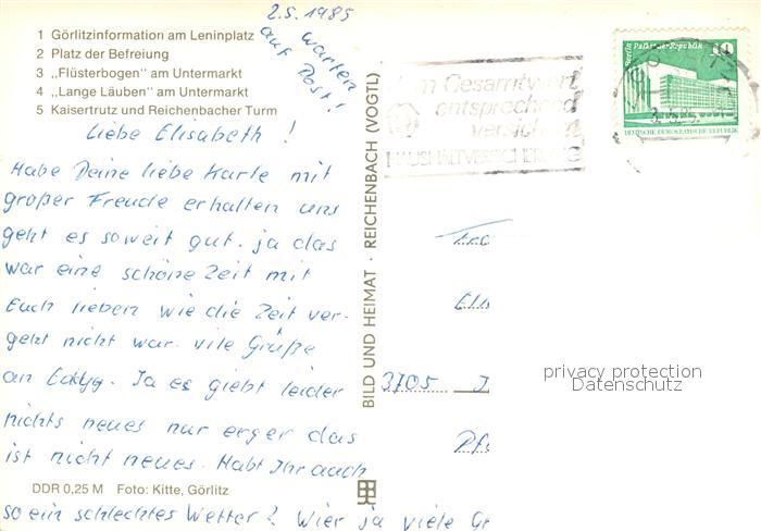 73082942 alte Postkarte Goerlitz Sachsen Information am Leninplatz Brunnen Platz der Befreiung Fluesterbogen Lange Laeuben Untermarkt Kaisertrutz Reichenbacher Turm postalisch gelaufen Erhaltung siehe scans [FriedD77] KatCode: 11110014263000