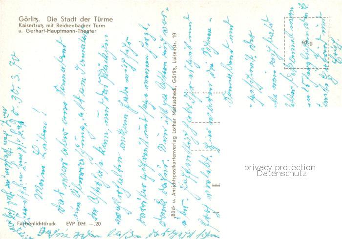 73832687 Goerlitz Sachsen Kaisertrutz mit Reichenbacher Turm und Gerhart Hauptmann Theater postalisch nicht gelaufen Erhaltung siehe scans [FriedD77] KatCode: 11110014263000