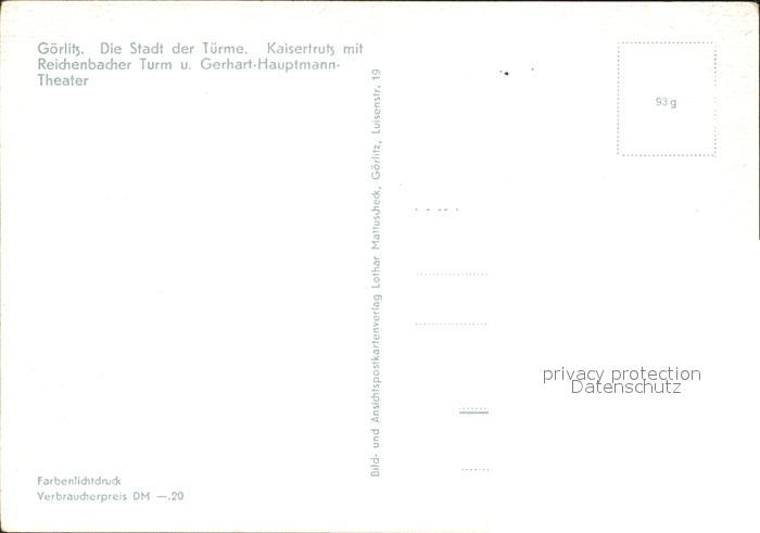 72071883 Goerlitz Sachsen Kaisertrutz Reichenbacher Turm Gerhart Hauptmann Theater postalisch nicht gelaufen Erhaltung siehe scans KatCode: 11110014263000