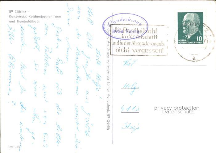 72137836 alte Postkarte Goerlitz Sachsen Kaisertrutz Reichenbacher Turm und Humboldthaus postalisch gelaufen Erhaltung siehe scans KatCode: 11110014263000