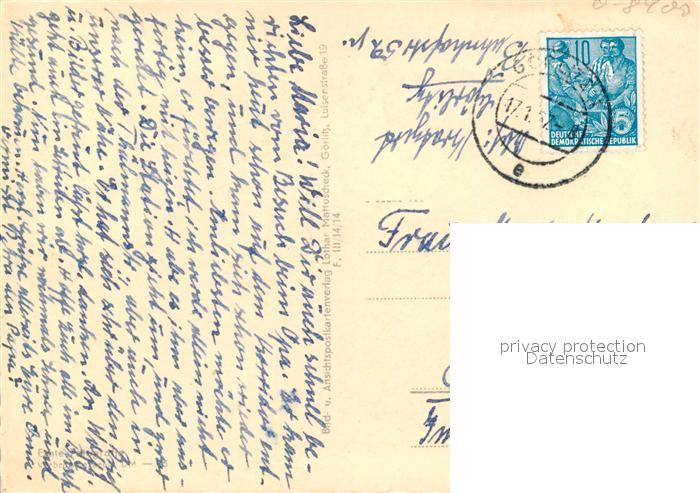 43354547 alte Postkarte Goerlitz Sachsen Kirche Bahnhof HO Berghotel Landeskrone Postamt Berliner Strasse Gerhart Hauptmann Theater Stadthalle Weinberghaus Brautwiesenplatz postalisch gelaufen Erhaltung siehe scans [FriedD77] KatCode: 11110014263000