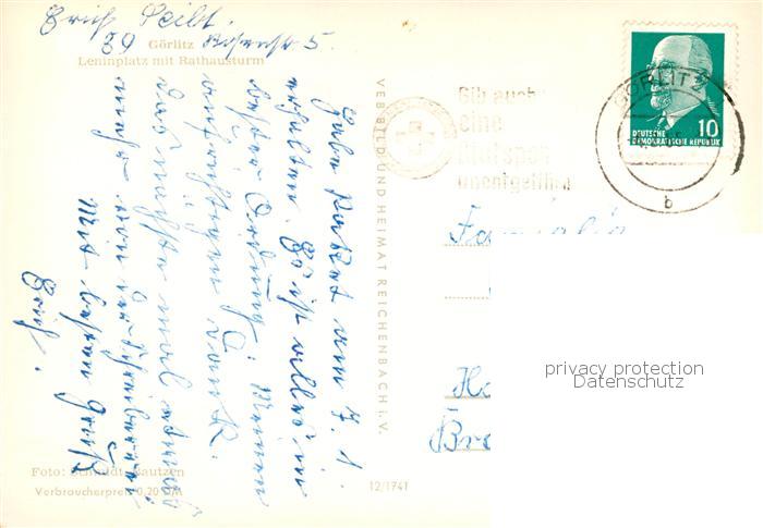 73832691 alte Postkarte Goerlitz Sachsen Leninplatz mit Rathausturm postalisch gelaufen Erhaltung siehe scans [FriedD77] KatCode: 11110014263000