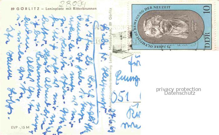 34145040 alte Postkarte GoeRLITZ Sachsen Leninplatz mit Ritterbrunnen postalisch gelaufen Erhaltung siehe scans [FriedD77] KatCode: 11110014263000