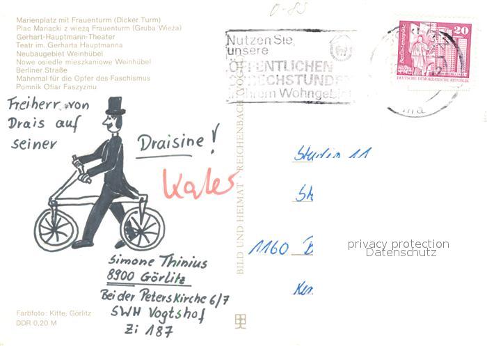 73039792 alte Postkarte Goerlitz Sachsen Marienplatz mit Frauenturm Gerhart Hauptmann Theater Berliner Str Mahnmal postalisch gelaufen Erhaltung siehe scans [WerneD78] KatCode: 11110014263000