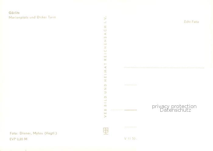 73750875 Goerlitz Sachsen Marienplatz und Dicker Turm postalisch nicht gelaufen Erhaltung siehe scans [WerneD78] KatCode: 11110014263000
