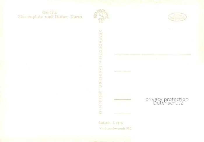 73034436 Goerlitz Sachsen Marienplatz und Dicker Turm postalisch nicht gelaufen Erhaltung siehe scans [WerneD78] KatCode: 11110014263000