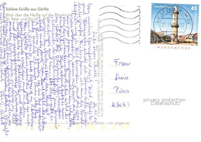 73238459 alte Postkarte Goerlitz Sachsen Neisse Pfarrkirche Sankt Peter und Paul postalisch gelaufen Erhaltung siehe scans [KathaD81] KatCode: 11110014263000