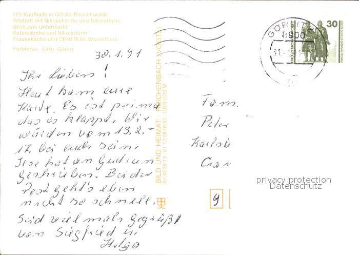 72383025 alte Postkarte Goerlitz Sachsen Nikolaikirche Untermarkt Peterskirche Frauenkirche postalisch gelaufen Erhaltung siehe scans KatCode: 11110014263000