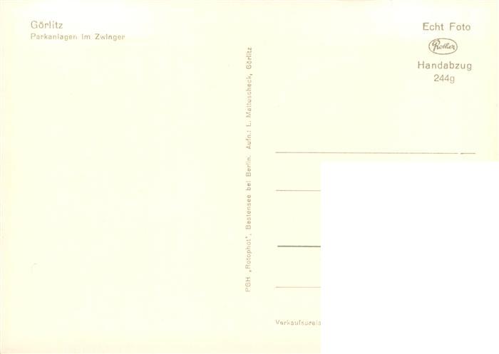 73911187 Goerlitz Sachsen Parkanlagen im Zwinger Handabzug postalisch nicht gelaufen Erhaltung siehe scans [FriedD77] KatCode: 11110014263000