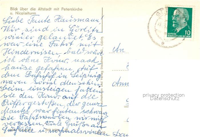 73071607 alte Postkarte Goerlitz Sachsen Peterskirche und Nikolaiturm postalisch gelaufen Erhaltung siehe scans [WerneD78] KatCode: 11110014263000