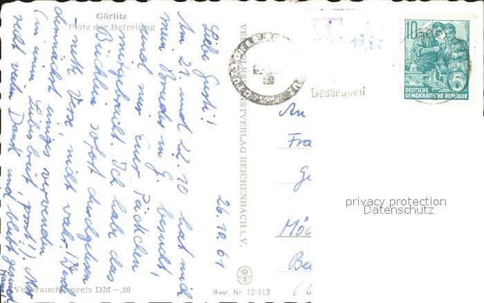 72464094 alte Postkarte Goerlitz Sachsen Platz der Befreiung postalisch gelaufen Erhaltung siehe scans KatCode: 11110014263000