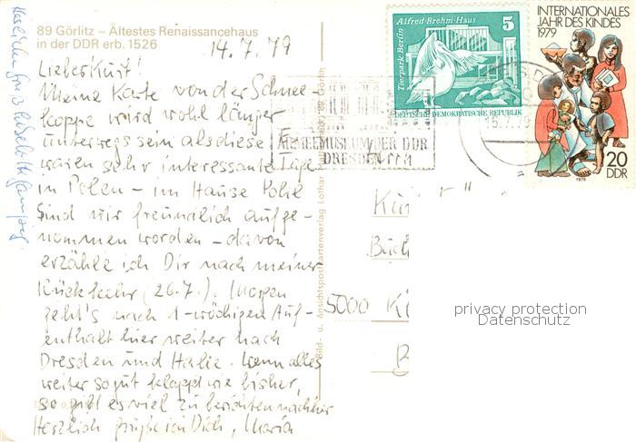 73778674 alte Postkarte Goerlitz Sachsen Schoenhof aeltestes Renaissancehaus in der DDR 16. Jhdt. postalisch gelaufen Erhaltung siehe scans [FriedD77] KatCode: 11110014263000