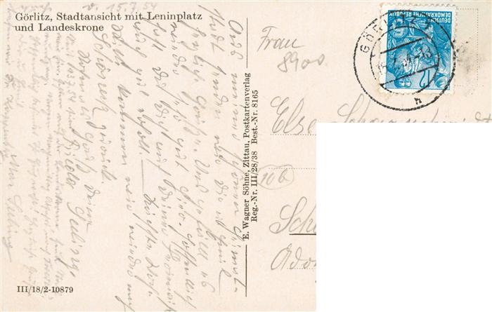 73907280 alte Postkarte Goerlitz Sachsen Stadtansicht mit Leninplatz und Landeskrone postalisch gelaufen Erhaltung siehe scans [FriedD77] KatCode: 11110014263000