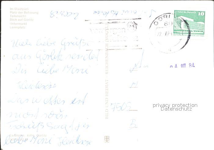 72315086 alte Postkarte Goerlitz Sachsen Stadtpark Platz der Befreiung Teilansicht Stadtblick Untermarkt Leninplatz postalisch gelaufen Erhaltung siehe scans KatCode: 11110014263000