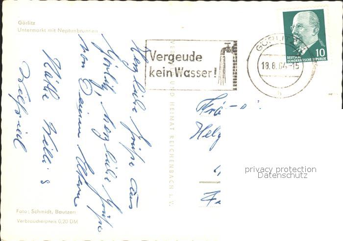 72232648 alte Postkarte Goerlitz Sachsen Untermarkt mit Neptunbrunnen postalisch gelaufen Erhaltung siehe scans KatCode: 11110014263000