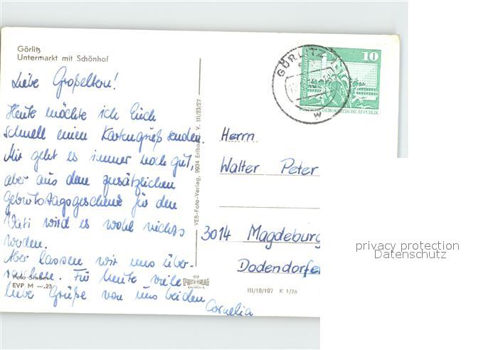 72081120 alte Postkarte Goerlitz Sachsen Untermarkt mit Schoenhof postalisch gelaufen Erhaltung siehe scans KatCode: 11110014263000
