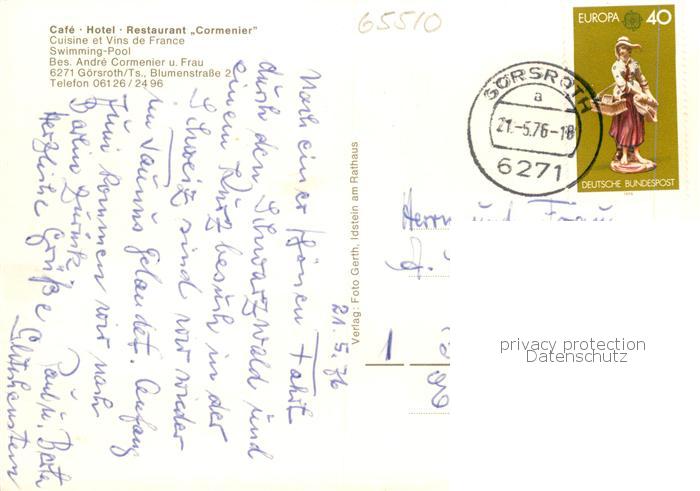 73858350 alte Postkarte Goersroth Huenstetten Hotel Restaurant Cafe Cormenier Swimming Pool Panorama postalisch gelaufen Erhaltung siehe scans [FriedD77] KatCode: 11110006439007