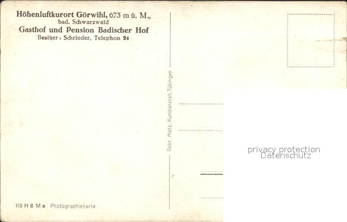 32157969 Goerwihl Badischer Hof postalisch nicht gelaufen Erhaltung siehe scans KatCode: 11110008337038