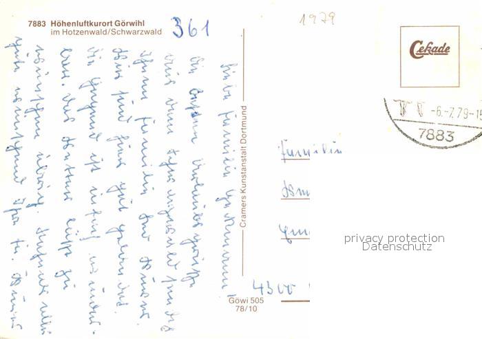 72887302 alte Postkarte Goerwihl Kriegerdenkmal Deuscher-Hof Albert-Schweizer-Haus Hallenbad postalisch gelaufen Erhaltung siehe scans [LiesaD40] KatCode: 11110008337038