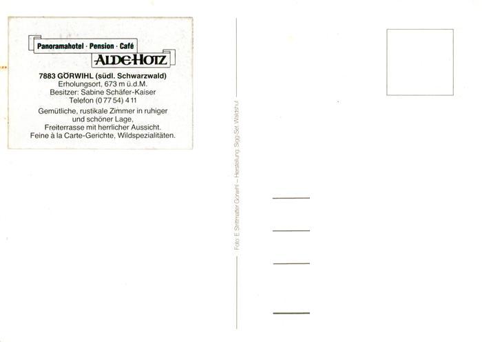 73885277 Goerwihl Panoramahotel Pension Cafe Alde Hotz postalisch nicht gelaufen Erhaltung siehe scans [WerneD78] KatCode: 11110008337038