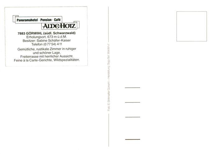 73885276 Goerwihl Panoramahotel Pension Cafe Alde Hotz postalisch nicht gelaufen Erhaltung siehe scans [WerneD78] KatCode: 11110008337038