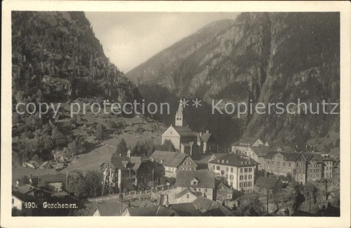 11779343 alte Postkarte Goeschenen Ortsblick mit Kirche postalisch gelaufen Erhaltung siehe scans KatCode: 11470220685194