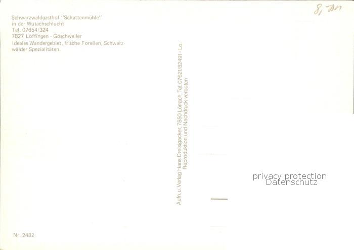 72354571 Goeschweiler Schwarzwald-Gasthof Schattenmuehle Wutachschlucht postalisch nicht gelaufen Erhaltung siehe scans KatCode: 11110008315070