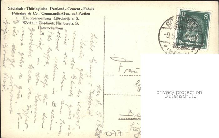 32158637 alte Postkarte Goeschwitz Saechsisch- Thueringische- Portland- Cement- Fabrik postalisch gelaufen Erhaltung siehe scans KatCode: 11110016053000