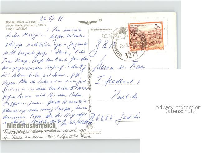 71978977 alte Postkarte Goesing Alpenkurhotel Goesing an der Mariazellerbahn postalisch gelaufen Erhaltung siehe scans KatCode: 11390