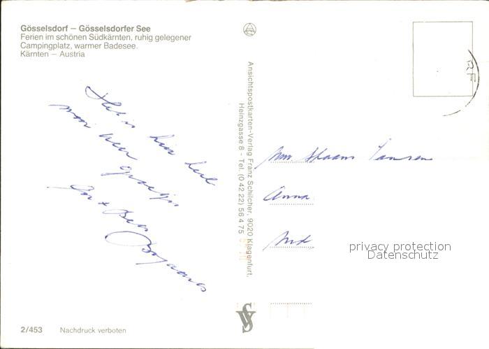 72093086 alte Postkarte Goesselsdorf Kaernten Panorama Campingplatz Goesselsdorfer See postalisch gelaufen Erhaltung siehe scans KatCode: 11390