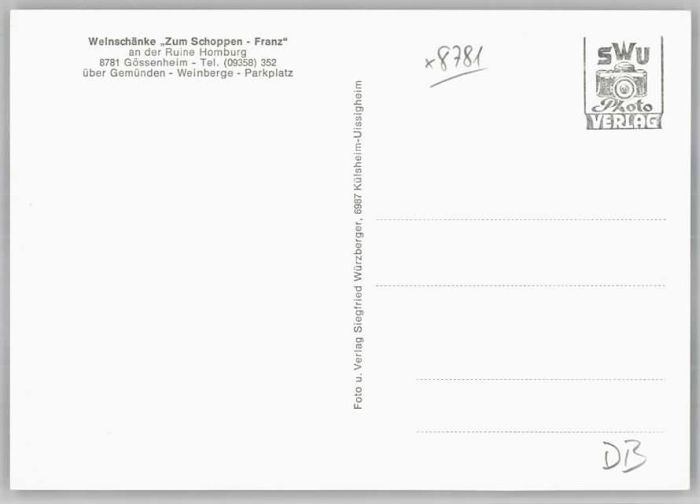 40243445 Goessenheim einschänke zum Schoppen-Franz Ruine Homburg * KatCode 11110009677132