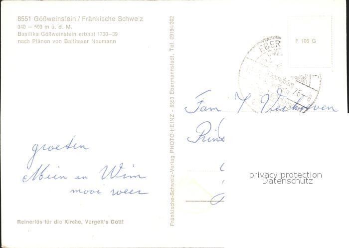 72274611 alte Postkarte Goessweinstein Basilika postalisch gelaufen Erhaltung siehe scans KatCode: 11110009474129