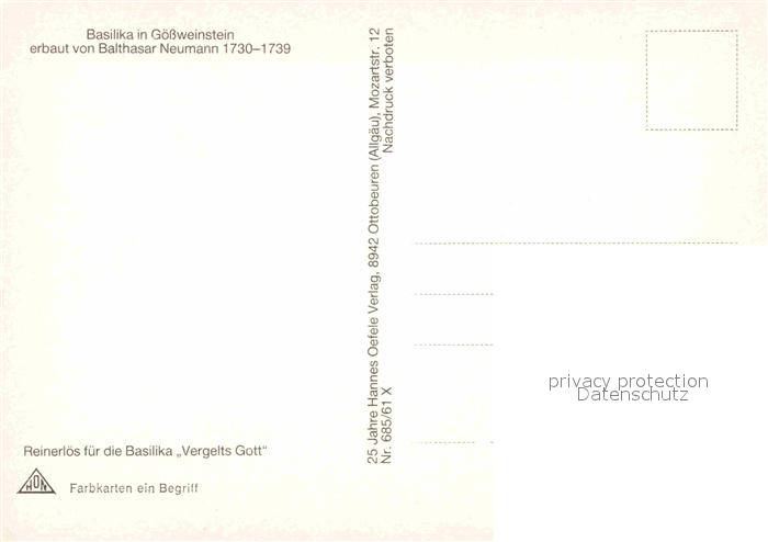 72696452 Goessweinstein Basilika Erbauer Balthasar Neumann 18. Jhdt. postalisch nicht gelaufen Erhaltung siehe scans [FriedD77] KatCode: 11110009474129
