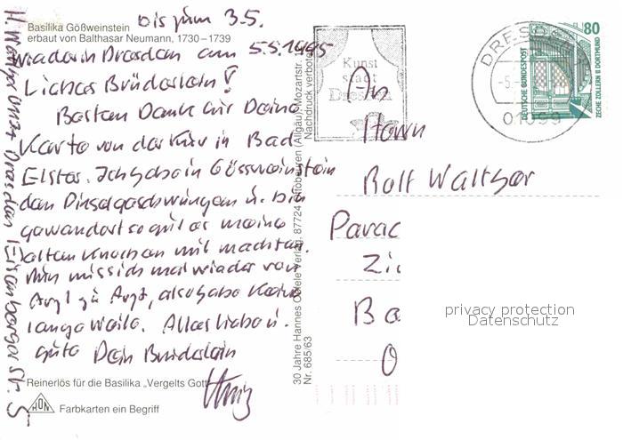 72631827 alte Postkarte Goessweinstein Basilika von Balthasar Neumann erbaut postalisch gelaufen Erhaltung siehe scans [LiesaD40] KatCode: 11110009474129
