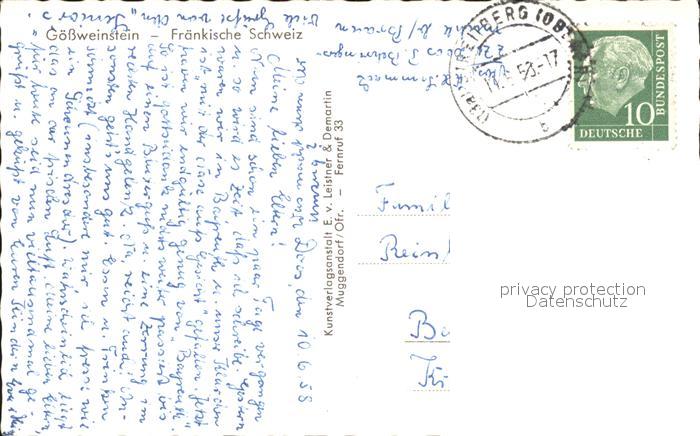 71930222 alte Postkarte Goessweinstein Burg Teilansicht postalisch gelaufen Erhaltung siehe scans KatCode: 11110009474129