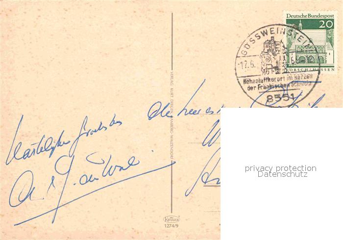 72655728 alte Postkarte Goessweinstein Fliegeraufnahme postalisch gelaufen Erhaltung siehe scans [LiesaD40] KatCode: 11110009474129