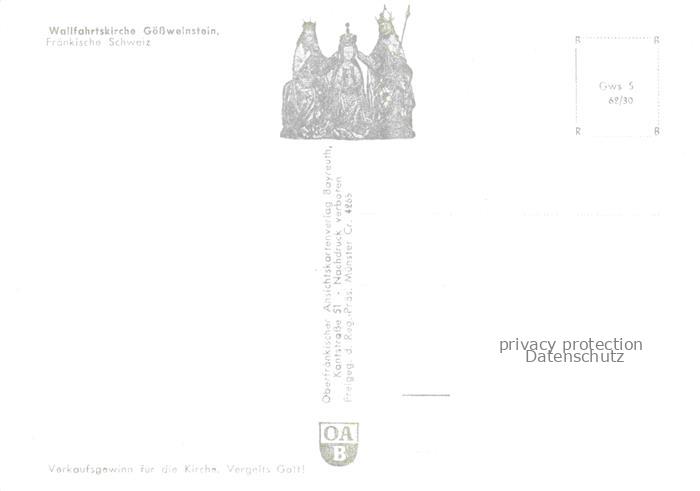 74109684 Goessweinstein Fliegeraufnahme mit Wallfahrtskirche postalisch nicht gelaufen Erhaltung siehe scans [WerneD78] KatCode: 11110009474129