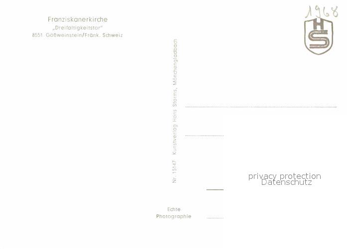 72898636 Goessweinstein Franziskanerkirche Dreifaltigkeitstor postalisch nicht gelaufen Erhaltung siehe scans [PaolaD17] KatCode: 11110009474129