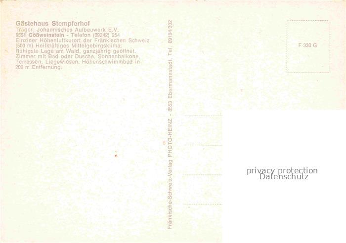 74039537 Goessweinstein Gaestehaus Stempferhof postalisch nicht gelaufen Erhaltung siehe scans [FriedD77] KatCode: 11110009474129