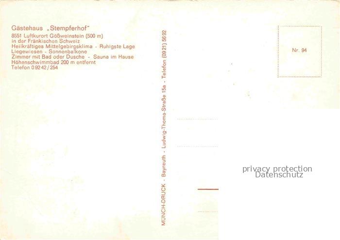 74039530 Goessweinstein Gaestehaus Stempferhof postalisch nicht gelaufen Erhaltung siehe scans [FriedD77] KatCode: 11110009474129