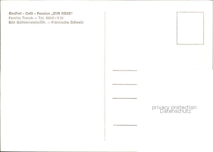 71931265 Goessweinstein Gasthof Cafe Zur Rose postalisch nicht gelaufen Erhaltung siehe scans KatCode: 11110009474129