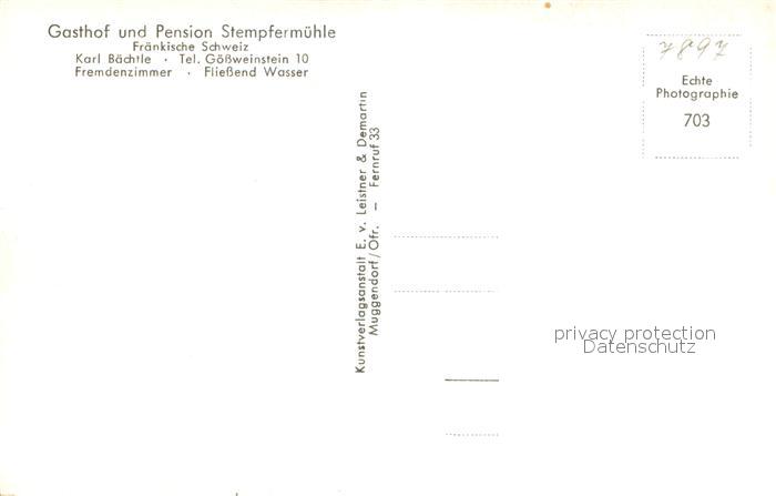 73650612 Goessweinstein Gasthof Pension Stempfermuehle Ortsblick Sachsenmuehle Tuechersfeld Behringermuehle Pottenstein postalisch nicht gelaufen Erhaltung siehe scans [WerneD78] KatCode: 11110009474129