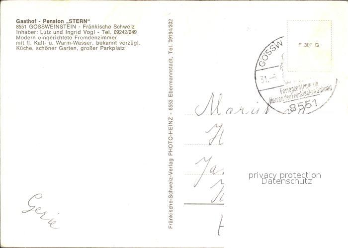 72114437 alte Postkarte Goessweinstein Gasthof Pension Stern postalisch gelaufen Erhaltung siehe scans KatCode: 11110009474129