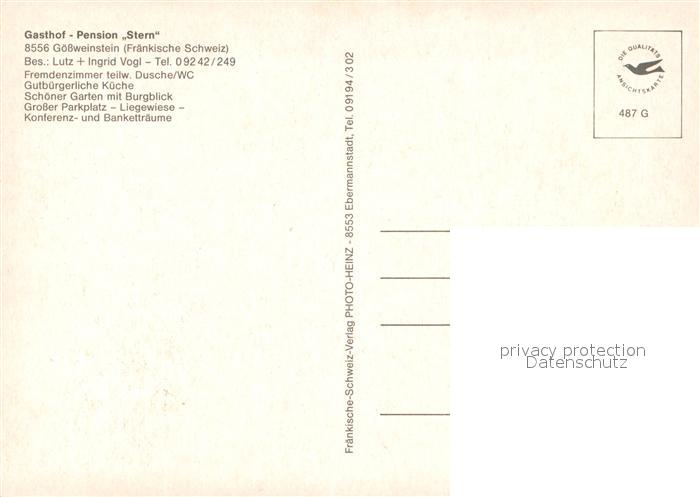 73089102 Goessweinstein Gasthof-Pension Stern postalisch nicht gelaufen Erhaltung siehe scans [PaolaD17] KatCode: 11110009474129
