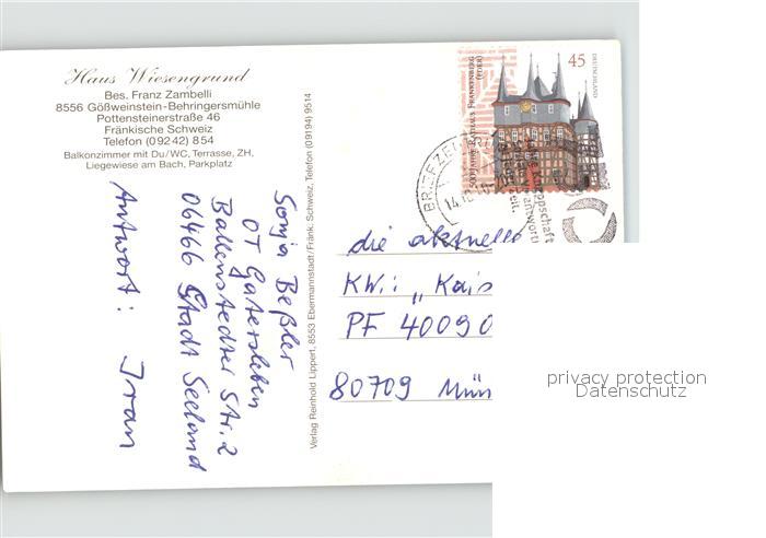 71979019 alte Postkarte Goessweinstein Haus Wiesengrund postalisch gelaufen Erhaltung siehe scans KatCode: 11110009474129