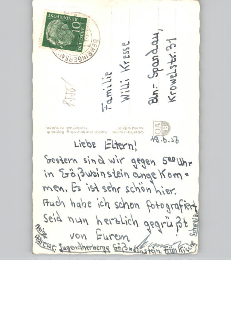 31168434 Goessweinstein Jugendherberge postalisch nicht gelaufen KatCode: 11110009474129