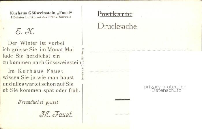 72280843 Goessweinstein Kurhaus Kirche Schloss postalisch nicht gelaufen Erhaltung siehe scans KatCode: 11110009474129
